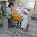フェリーが定期検査でドック入りしたため、しばらくの間は高速船運搬用の仕様で給食が運ばれてきます。初日である今日は、配膳室でコンテナと食缶の...