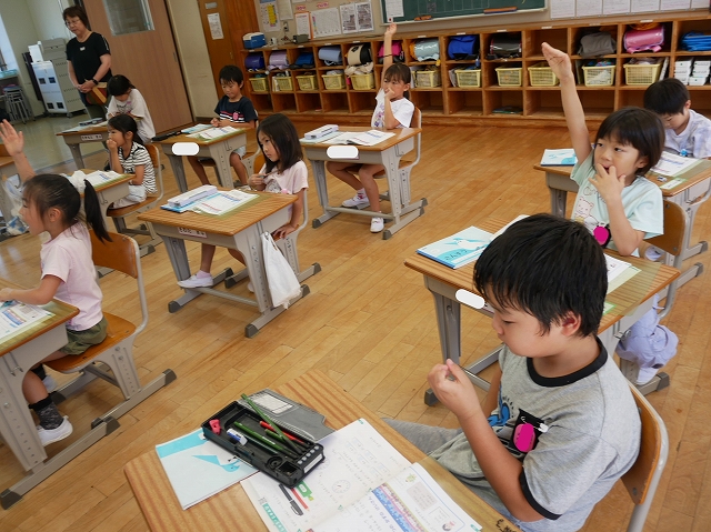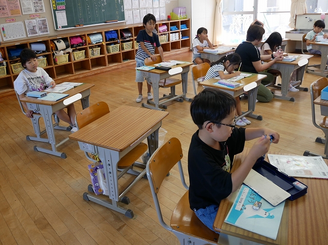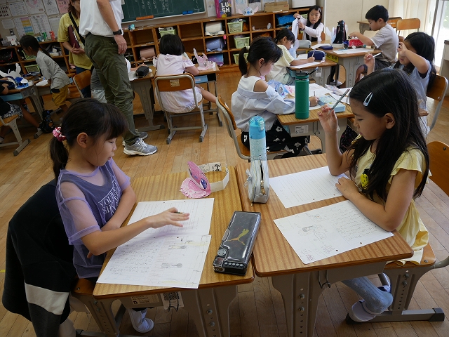 1年生は、算数の時間に3つの数の計算をしていました。絵や文章にかかれていることから3つの数を足したり引いたりする式を作り、計算していました。1年生は、できることがどんどん増えています。