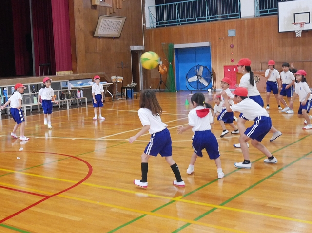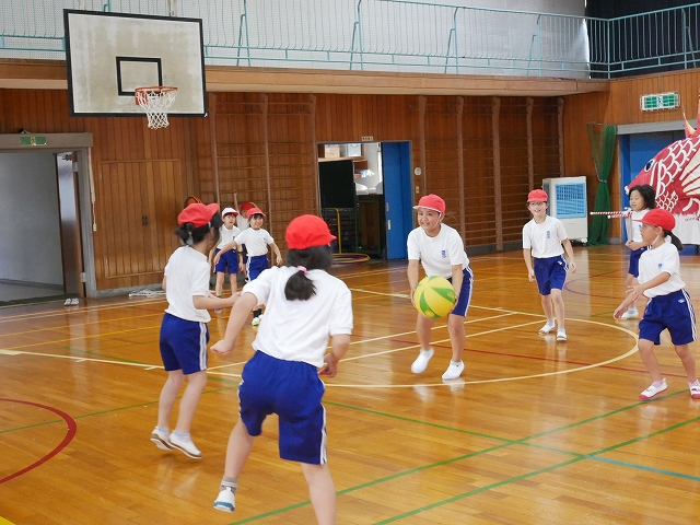 1,3年 合同体育 投稿日時: 2025年10月7日 投稿者: 豊浜小学校 令和7年10月7日(火) 2時間目 2時間目に1年生と3年生が合同で体育をしました。一緒に鬼ごっこ「いろいろぼうや」やドッジボールをして楽しく体を動かしていました。1年生の様子を見て気遣う3年生の姿に3年生の成長を感じました。