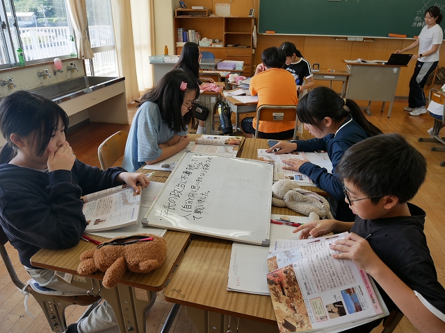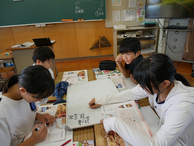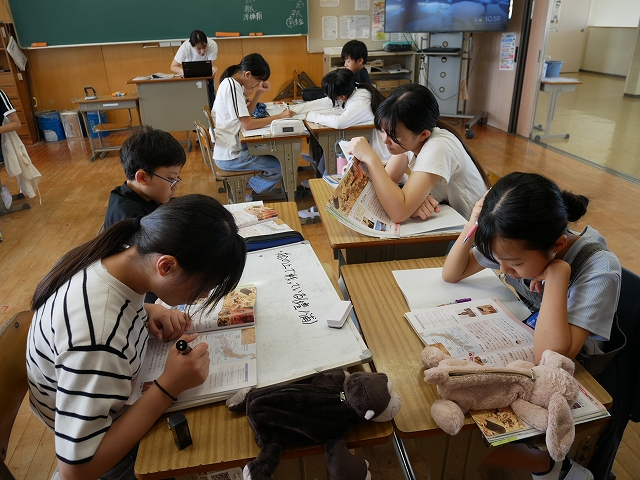 6年 社会 投稿日時: 2025年10月7日 投稿者: 豊浜小学校 令和7年10月7日(火) 3時間目 6年生は、社会の時間に武士の時代について学習していました。グループで協力して、教科書や資料を基に課題に取り組んでいました。