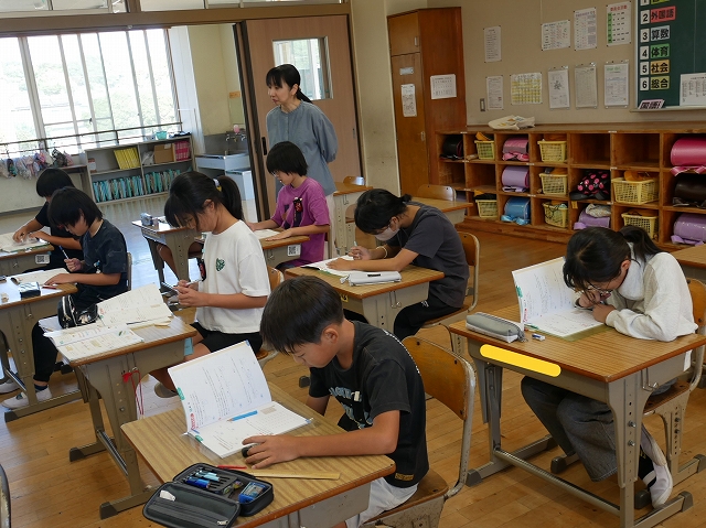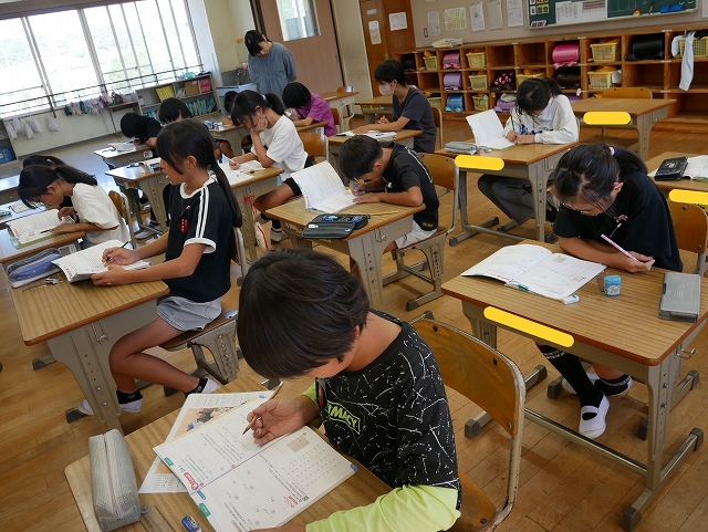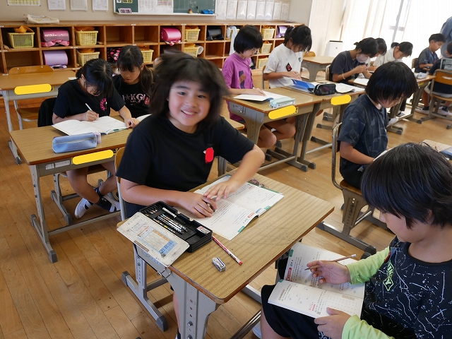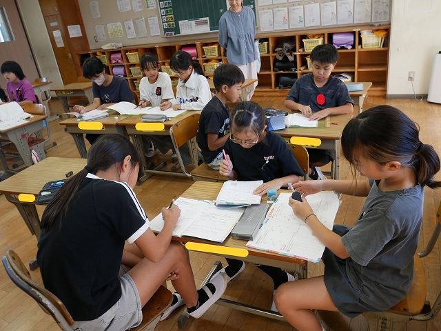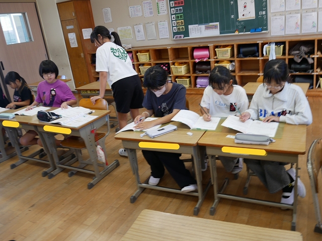 4年 算数 投稿日時: 2025年10月9日 投稿者: 豊浜小学校 令和7年10月9日(木) 3時間目 4年生は、算数の時間に発展問題を解いていました。まずは自分の力で考えて、その後友達と相談しながら答えを導き出していました。