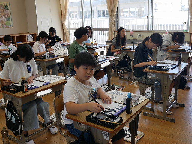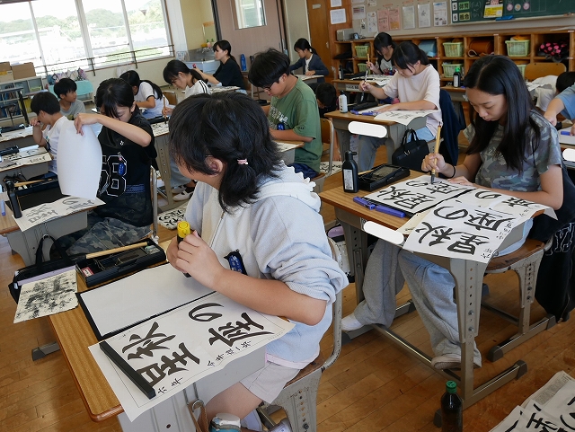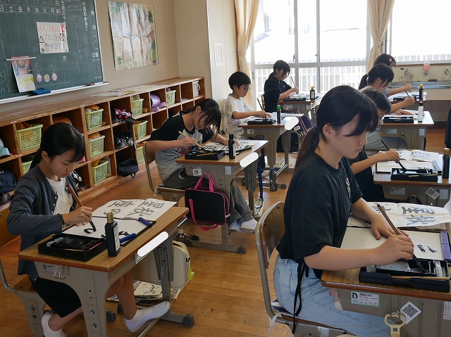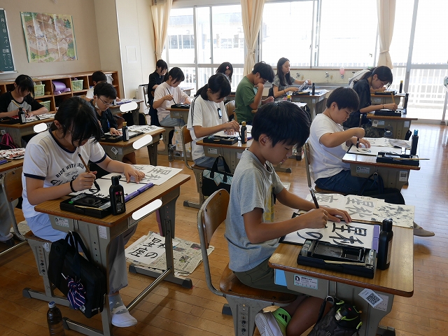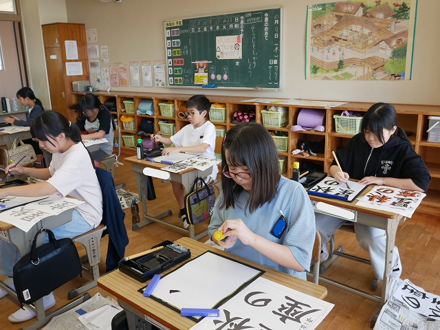 6年生は、書写の時間に書写コンクールに出品する作品「秋の星座」を書いていました。漢字と平仮名の大きさや字形に気をつけて丁寧に筆を進めていました。皆、真剣な表情で教室内が凜とした雰囲気でした。