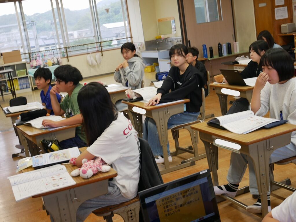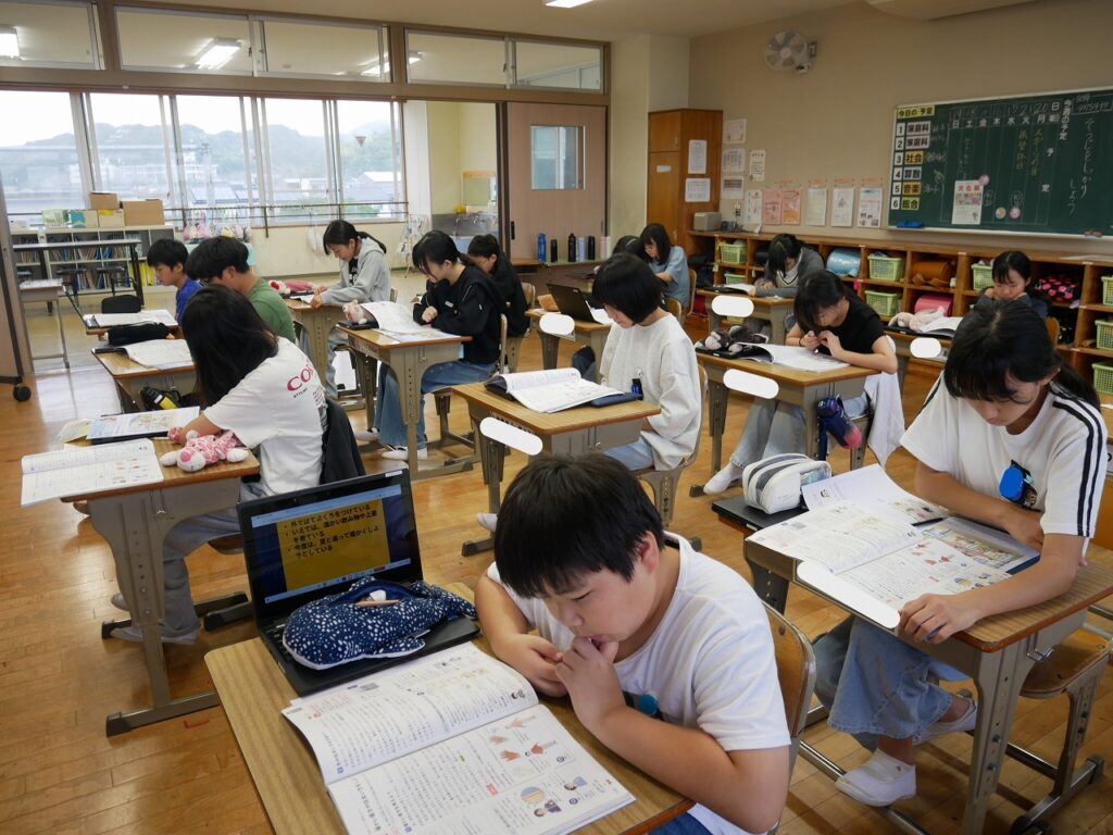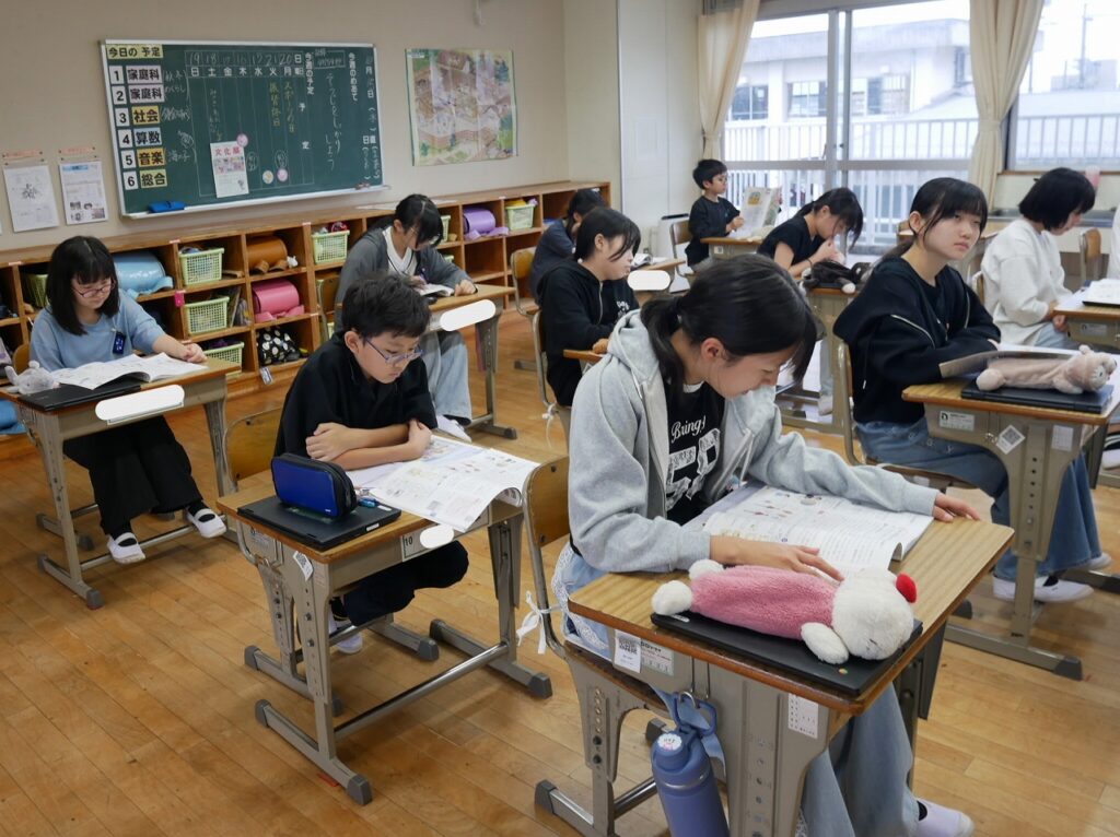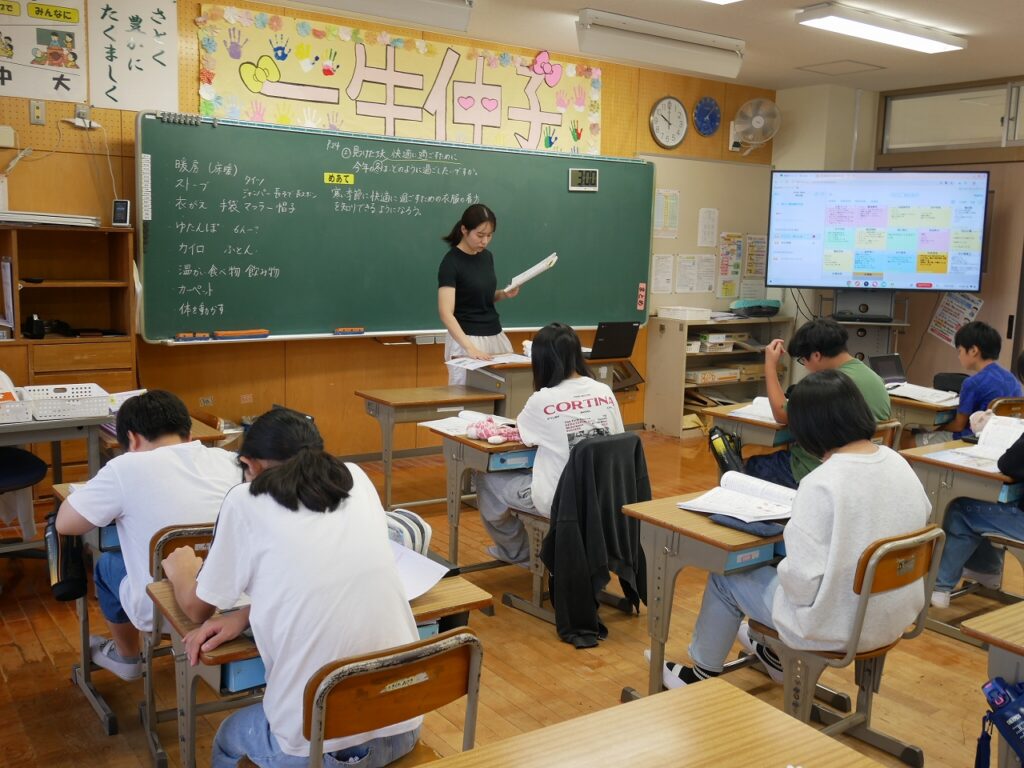 6年生は、家庭科の時間に季節の変化に合わせた衣服の着方について学習していました。寒い季節に快適に過ごす工夫を考えていました。重ね着の効果を確かめるために、手袋(軍手)1枚と2枚重ね、さらにその上にビニル手袋をかぶせてみて、温かさを比べていました。