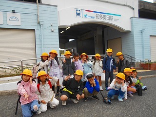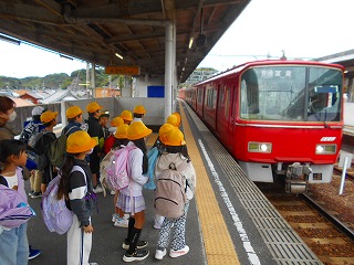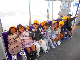 名鉄内海駅から知多奥田駅まで名鉄電車に乗って、ビーチランドに行きました。券売機で一人一人、切符を買いました。電車の中ではクループごとにマナーを守って座りました。切符やお金の管理がしっかりできました。ビーチランドでは、水しぶきのかかるエリアでダイナミックなイルカショーを見ました。カッパをてきぱきと着て、準備もしっかりできました。お弁当も芝生の広場で楽しく食べることができました。楽しい一日でした。
