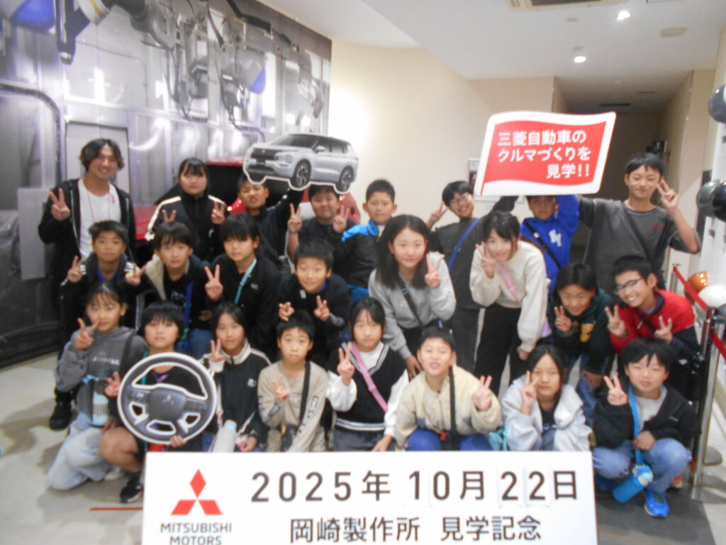 三菱自動車工場では、自動車がつくられていく様子を間近で見学しました。ロボットが正確に部品を組み立てる様子や、働く人たちの工夫に、子どもたちは目を輝かせて見入っていました。