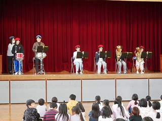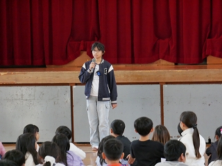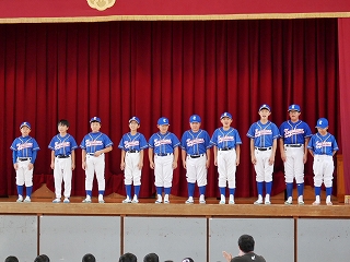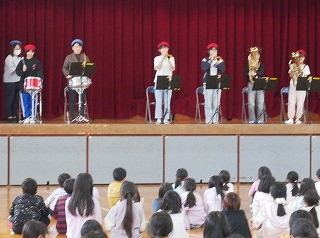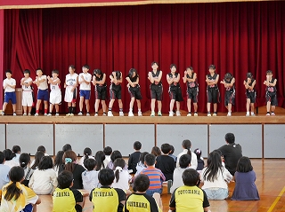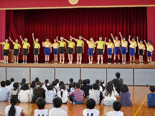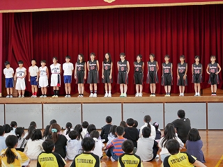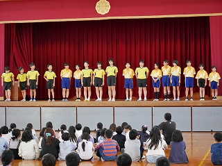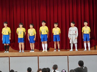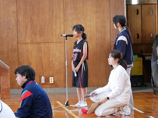 後期児童会役員は運営、司会などでがんばりました。全ての部活動の発表の後は、児童会長の激励の言葉、そして1~3年生が応援をしました。