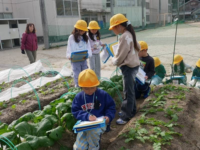2年 生活 投稿日時: 2025年11月4日 投稿者: 豊浜小学校 令和7年11月4日(火) 3時間目 2年生は、3時間目に畑の野菜の観察をしていました。一ヶ月前に苗を植えた小松菜の様子を絵や文で記録していました。一ヶ月で葉がとても大きくなっていました。