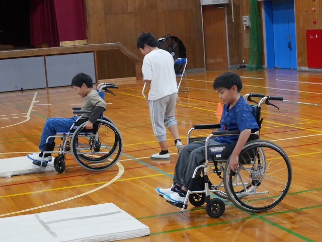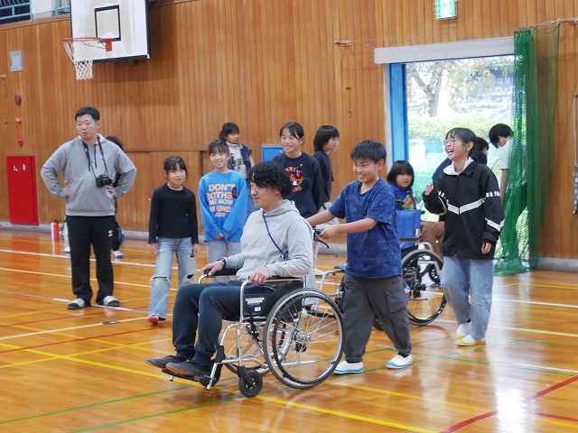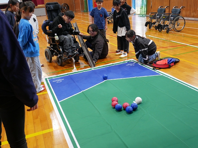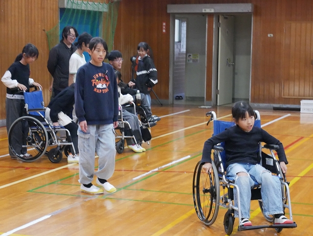 4年生が2回目の福祉実践教室(肢体不自由)を行いました。車椅子で生活をしている講師の方のお話を聞いたり、車椅子に乗る体験、車椅子の人を介助する体験、ボッチャの体験などをしました。実際に体験してみることで多くのことを学ぶことができました。