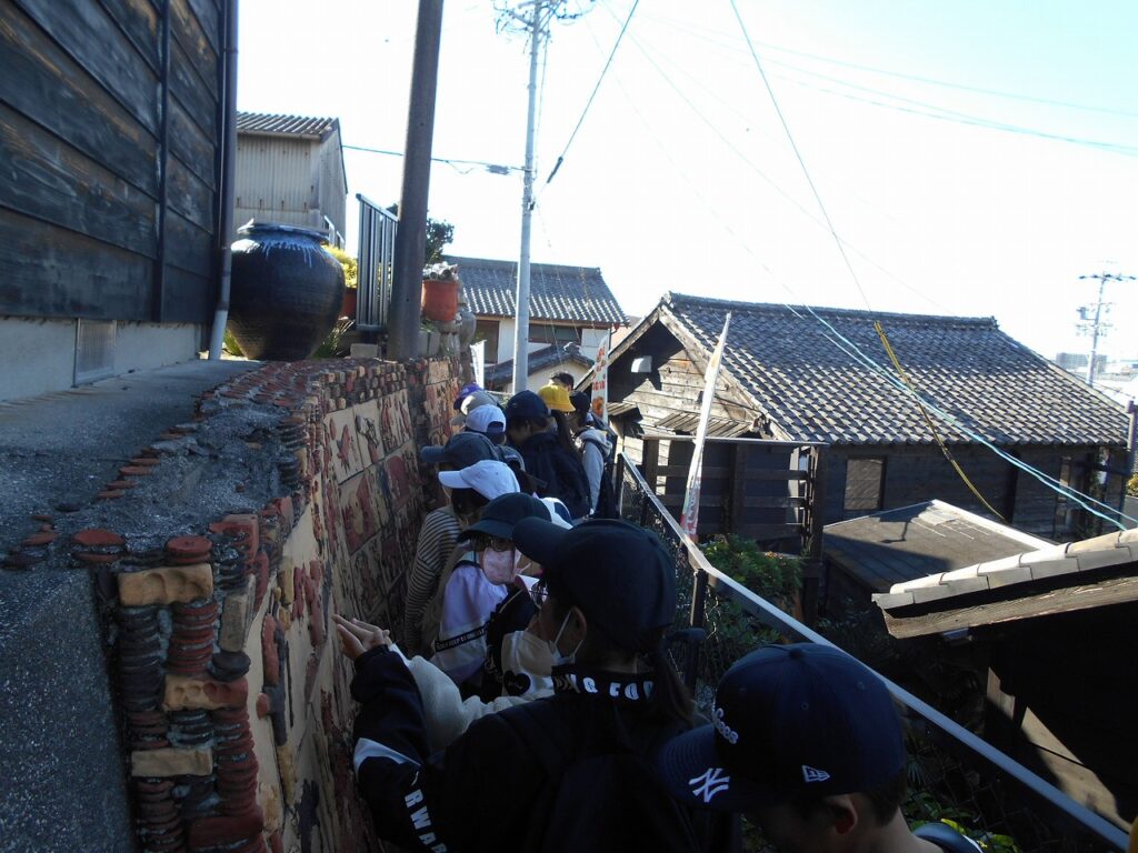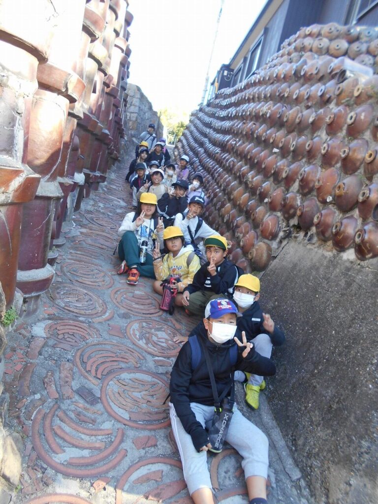 4年生が11月20日(木)に校外学習で焼き物散歩道を散策しました。比較的穏やかな天候の下、茶色の土管坂や煙突などを見て回りました。