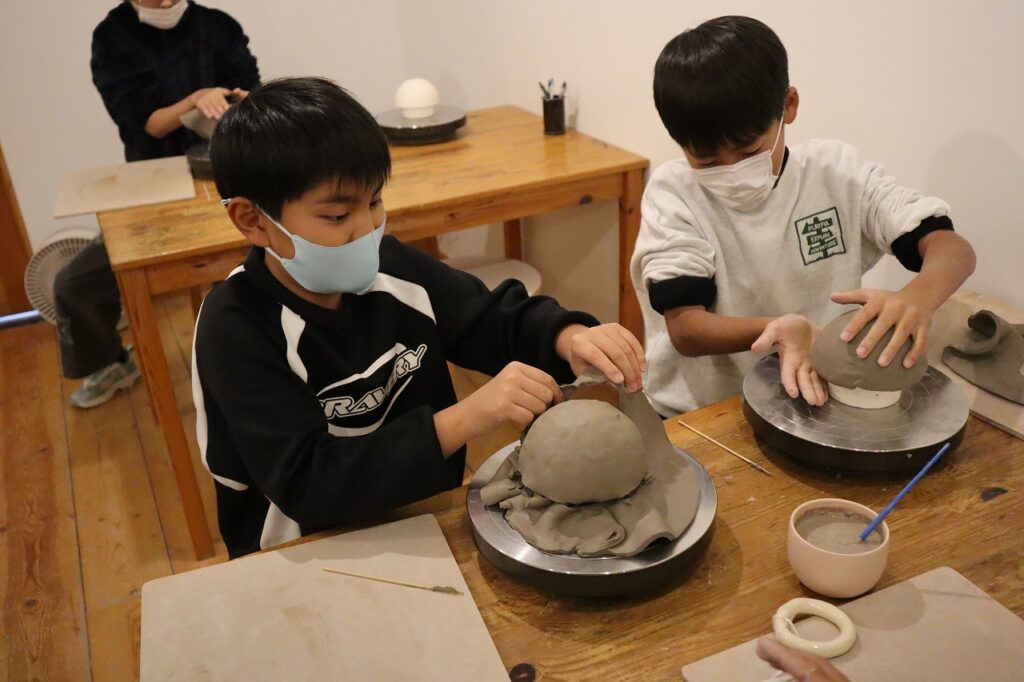 その後常滑STOREへ移動して陶芸体験をしました。作り方の説明をよく聞いて、世界に一つだけのお茶碗を作ることができました。子どもたちは「いつ届くかな」と心待ちにしていました。焼き上がりが楽しみです。