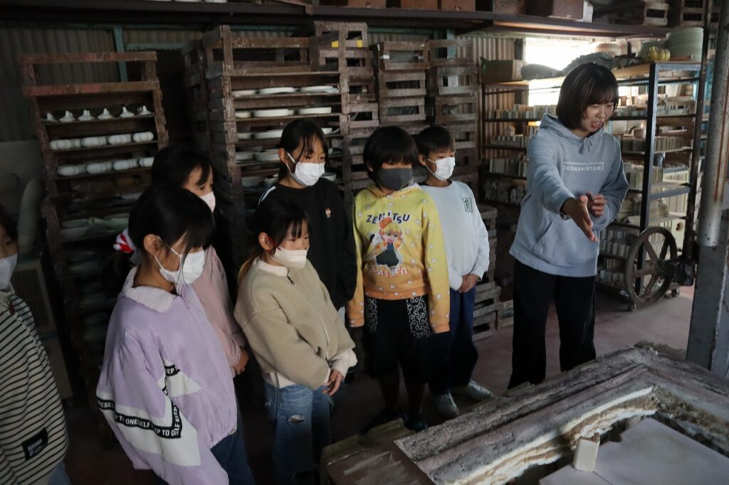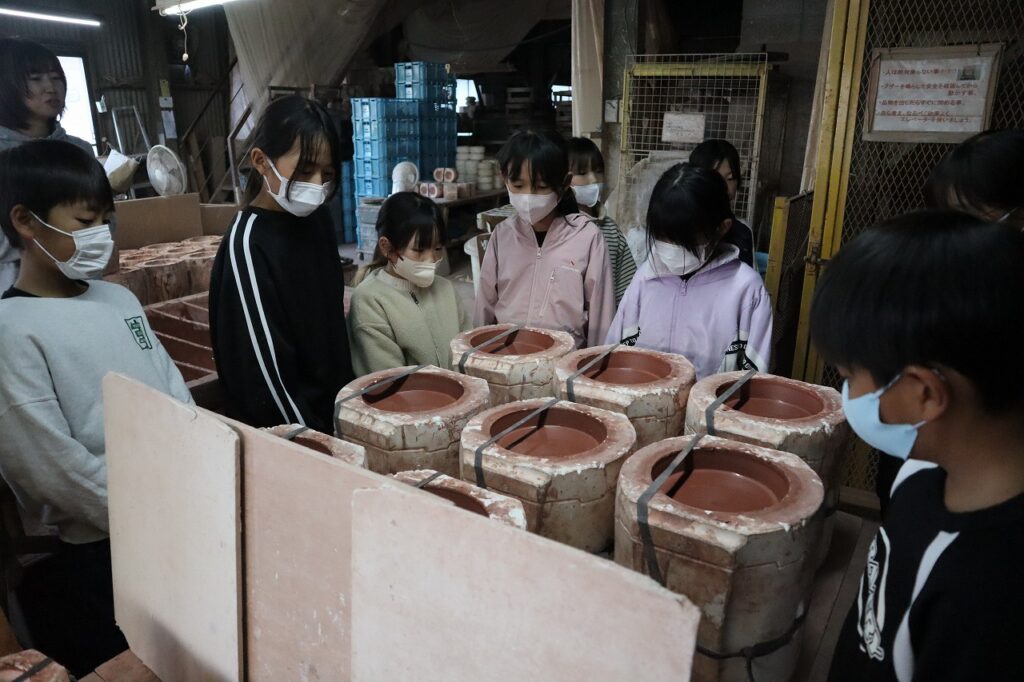 昼食後に山源陶苑さんの工場を見学させていただきました。製造している陶器や作り方について、わかりやすく説明していただきました。