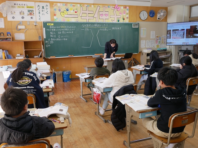6年 社会 投稿日時: 2025年12月4日 投稿者: 豊浜小学校 令和7年12月4日(木) 3時間目 6年生は、社会の時間に江戸時代について学習していました。江戸幕府がなぜ鎖国を行ったかについて、これまで学習したことを生かして、教科書や資料集の資料から読み解いていました。