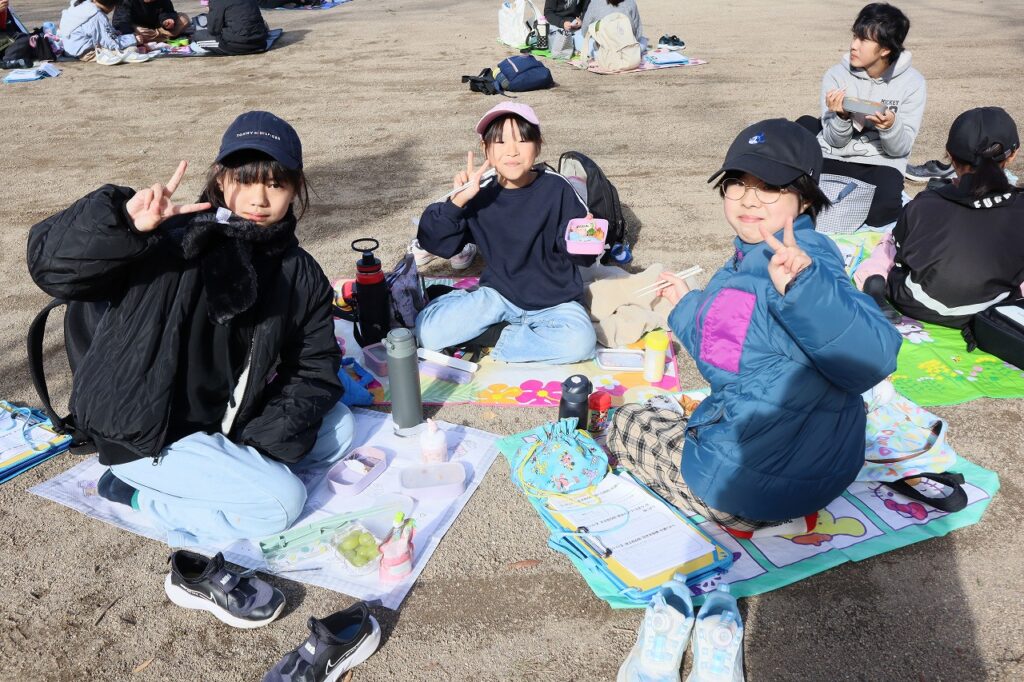 お弁当は白川公園で食べました。2学期は校外学習など行事がたくさんあり、そのたびに保護者の方に、お弁当を用意していただきありがとうございました。
