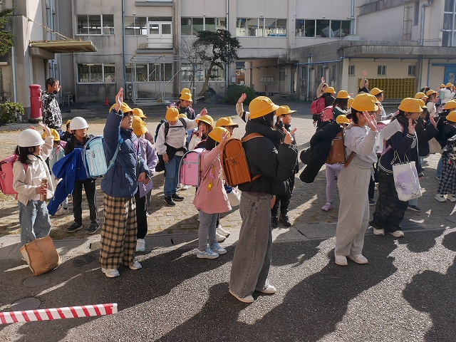 今日から3日間、個人懇談会のため、児童は給食後に一斉下校します。中庭に通学班ごとに整列をして、横断の練習をしてから「さようなら」です。交通ルールを守って安全に下校してくださいね。