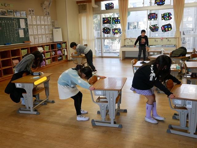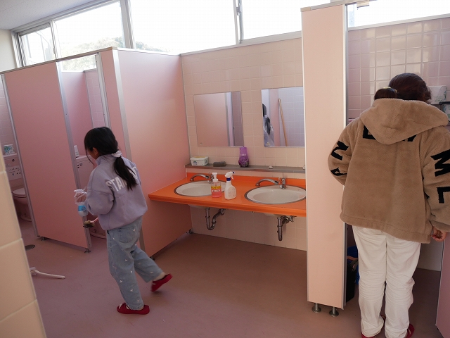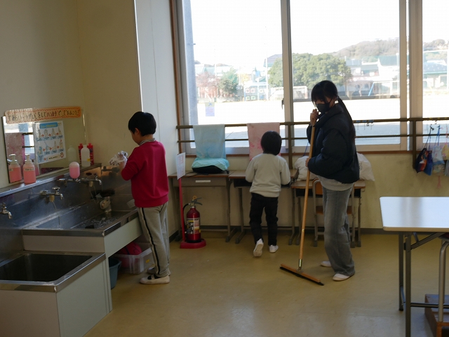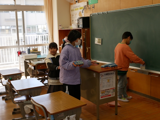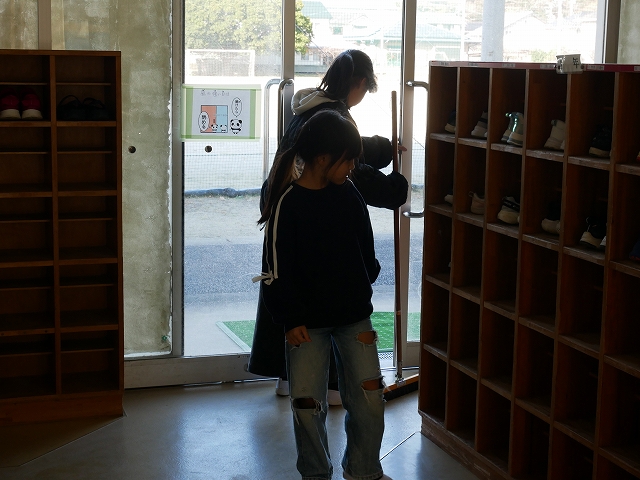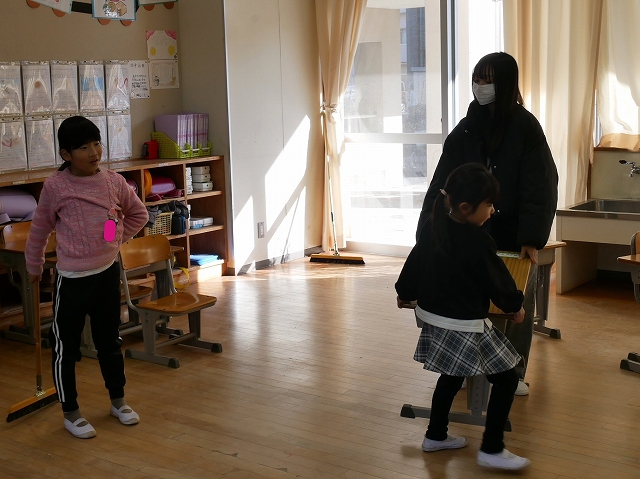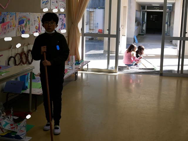 掃除の時間の様子です。6年生は、1年生に優しく教え、一緒に掃除をしてくれています。きれいな学校は気持ちがいいですね。