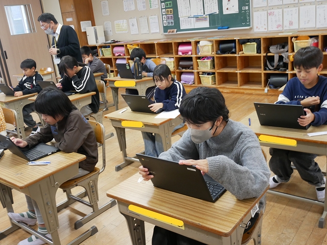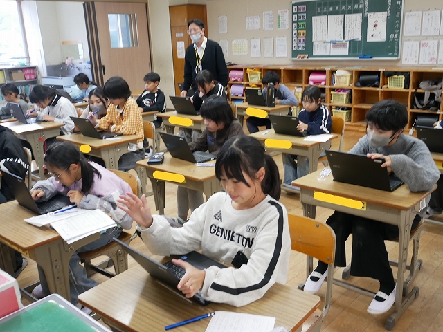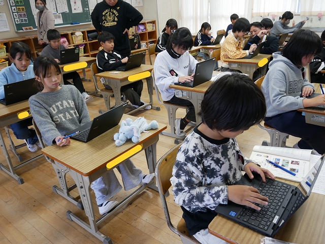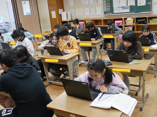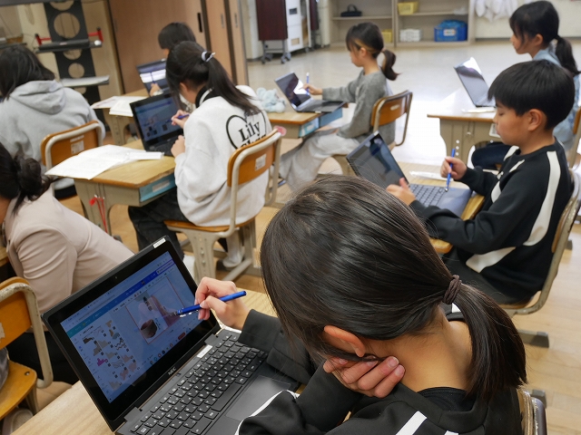 4年 国語 投稿日時: 2025年12月17日 投稿者: 豊浜小学校 令和7年12月17日(水) 5時間目 4年生は、国語の時間にタブレット端末を使って、伝統工芸品の魅力を伝えるリーフレットを作成していました。図書資料などで調べたことを写真や文で紹介し、素敵な表紙を作っていました。