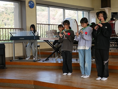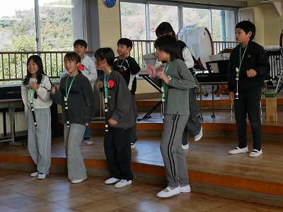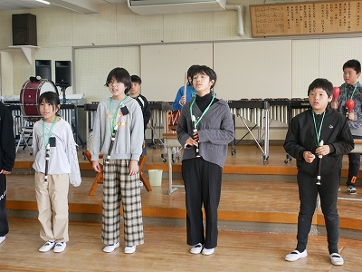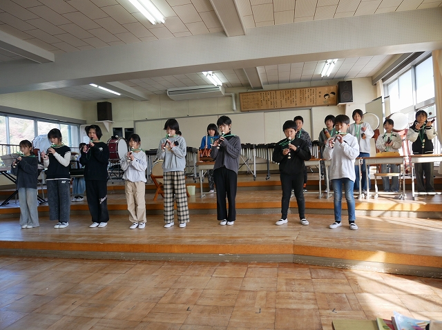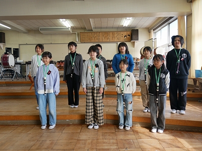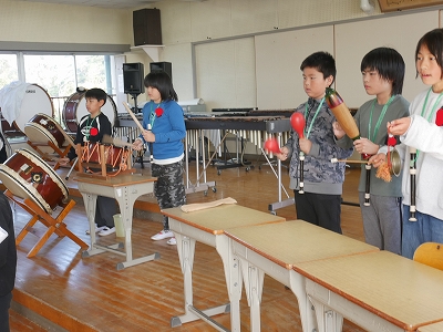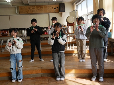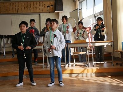 4年生が音楽の時間にミニコンサートを開き、その時間に授業のない先生たちを招待してくれました。合唱は「プポパ」と「もみじ」、合奏はリコーダーで「もののけ姫」とさまざまな楽器での「ソーラン節」の4曲を披露してくれました。始まる前は少し緊張した様子でしたが、始まってからはとても楽しそうに歌ったり真剣な表情で演奏したりする姿に感動しました。とても気持ちのよい時間でした。