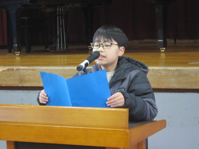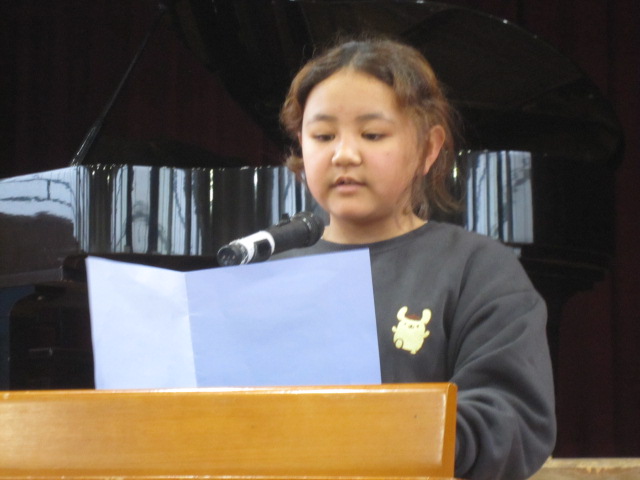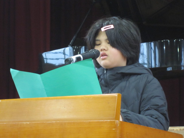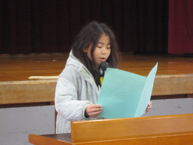 終業式前に、代表児童によるスピーチがありました。2学期にがんばったことやできるようになったことや楽しかったことなどについて、発表することができました。