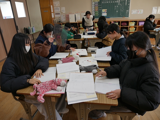 6年生は、国語の時間に「おすすめパンフレットを作ろう」に取り組んでいました。グループで、おすすめしたいテーマ、どんな人にどんなものを推薦したいかを考え、パンフレットの構成を相談していました。