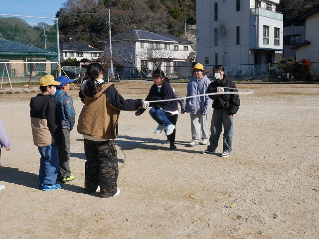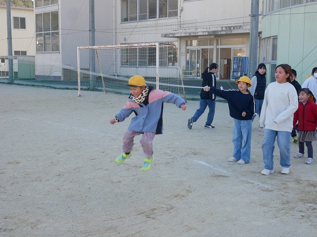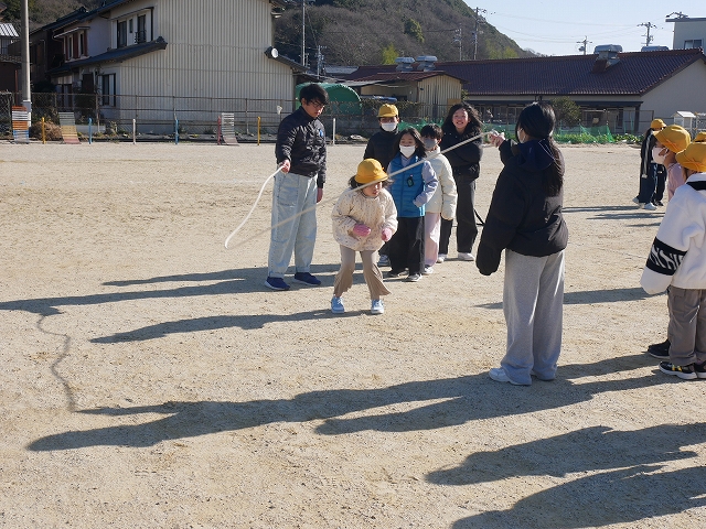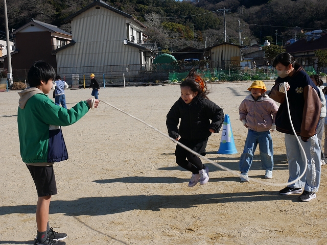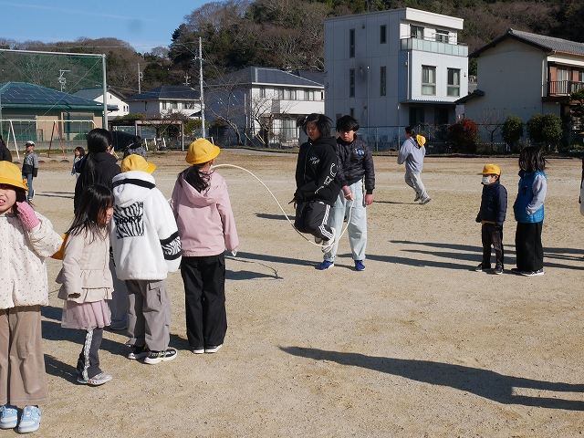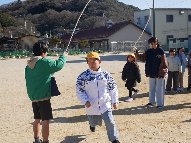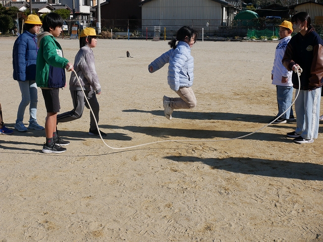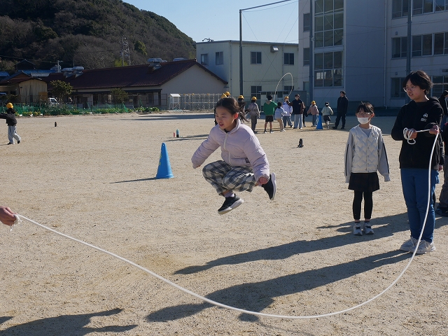 なわとび週間2日目 投稿日時: 2026年1月21日 投稿者: 豊浜小学校 令和8年1月21日(水) 大放課 なわとび週間2日目です。今日は、午後の芸術鑑賞会の関係で、いつもより短い15分間の大放課でしたが、なかよし班で長縄跳びを楽しみました。