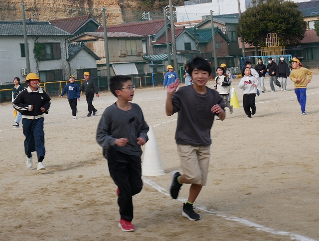 かけ足週間 投稿日時: 2026年1月27日 投稿者: 豊浜小学校 令和8年1月27日(火) 大放課 今日から30日(金)までは、運動委員会企画のかけ足週間です。大放課に全校で運動場を走ります。準備体操をしてから、高学年はトラックの外側、低学年はトラックの内側を自分のペースで10分間走りました。先生たちも一緒に気持ちよく運動しました。