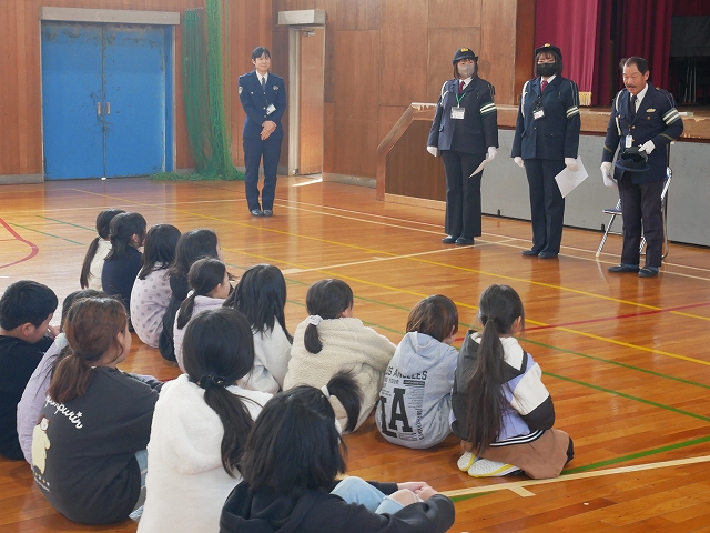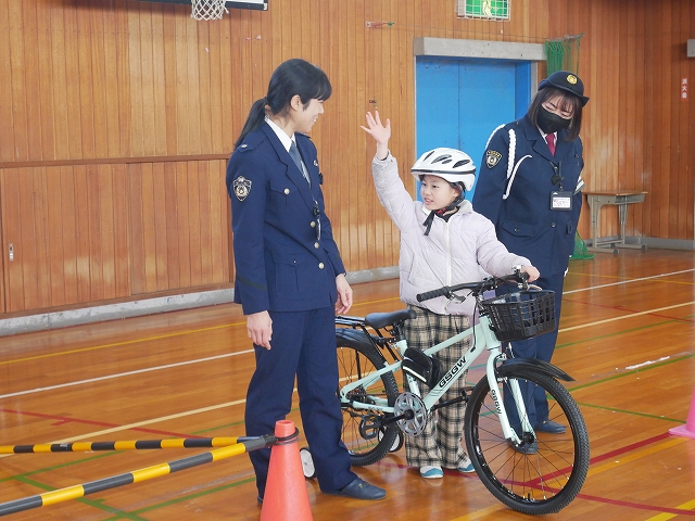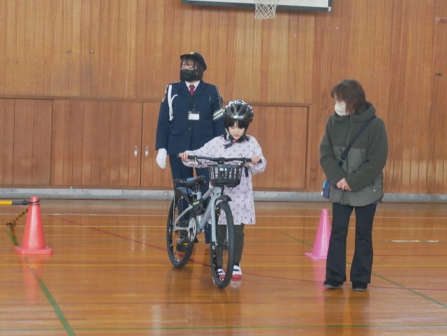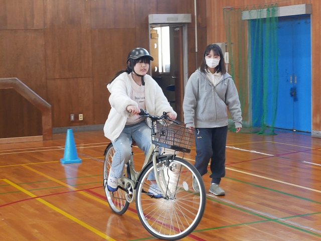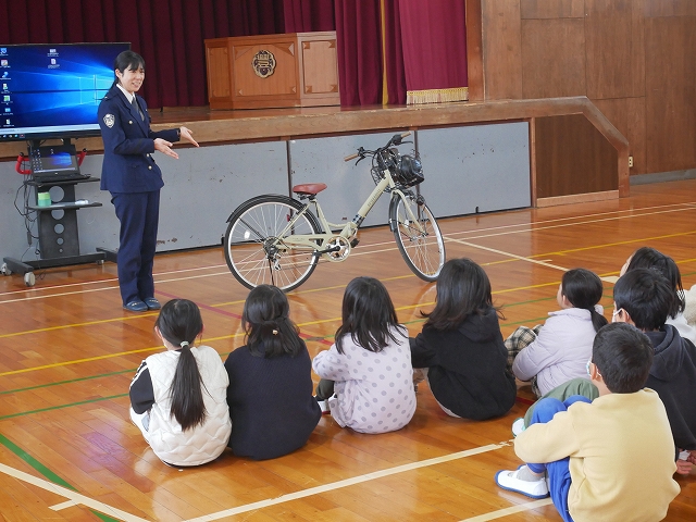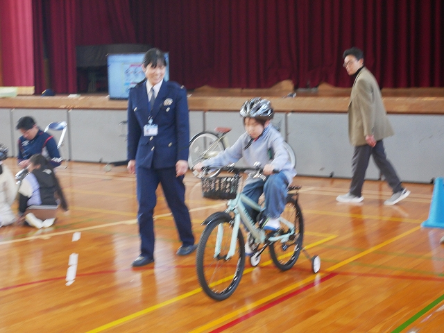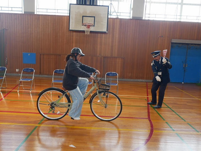 3年生は、半田警察署交通課の方といつもお世話になっている交通指導員の方を講師に交通安全教室を行いました。警察の方に自転車の交通ルールについて、お話をしていただいた後に、体育館内を道路に見立てて実技訓練を行いました。普段自転車に乗らない児童は、補助輪付きの自転車に乗ったり自転車を押して歩いたりして体験しました。今日教えてもらったことを守って、安全に自転車に乗るようにしましょう。