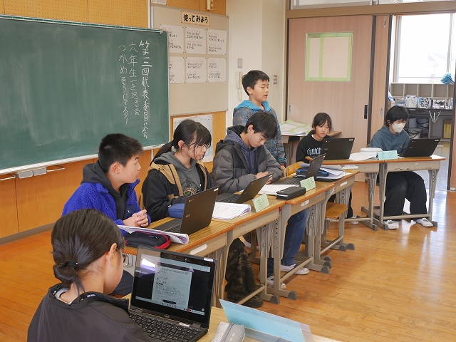 掃除の時間から昼放課にかけて代表委員会が行われました。送る会実行委員提案の「6年生を送る会」と総務委員会提案の「つかめ 掃除マスター」の2つの議題について話し合っていました。学級や委員会の代表としてよりよい企画になるようにしっかりと話し合われていました。