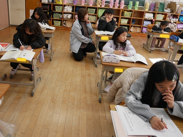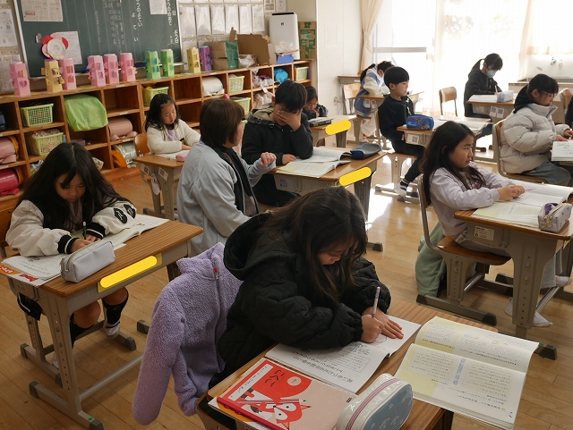 2年生は、国語の時間に友達への思いを手紙で伝えようという学習をしていました。学級の友達のすてきなところを「知多の友」に書き出していました。