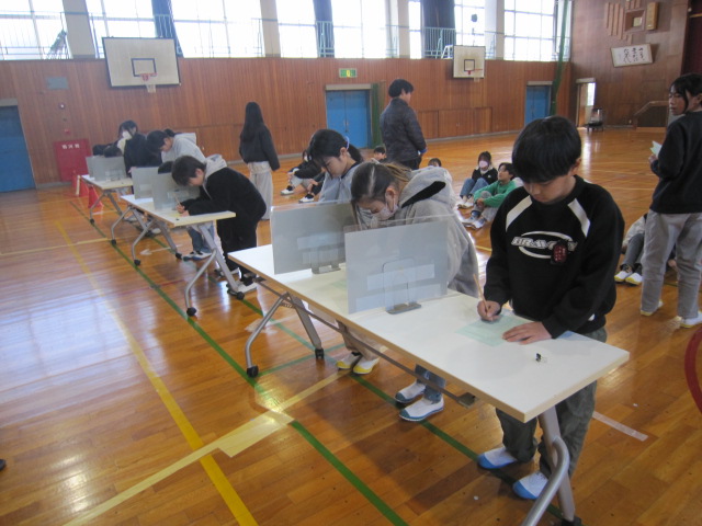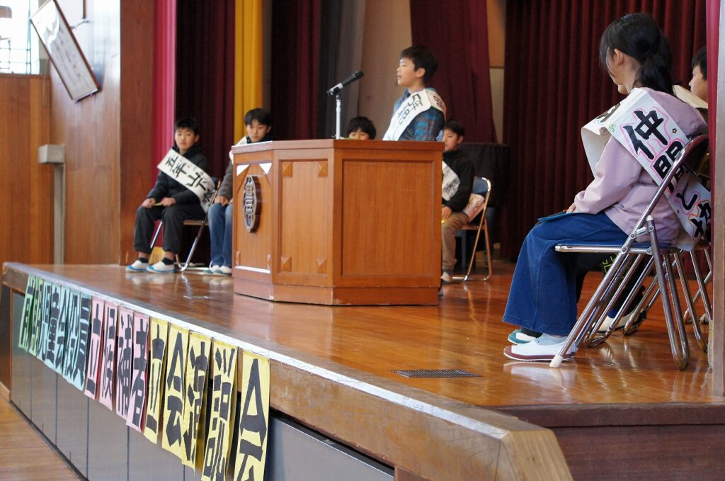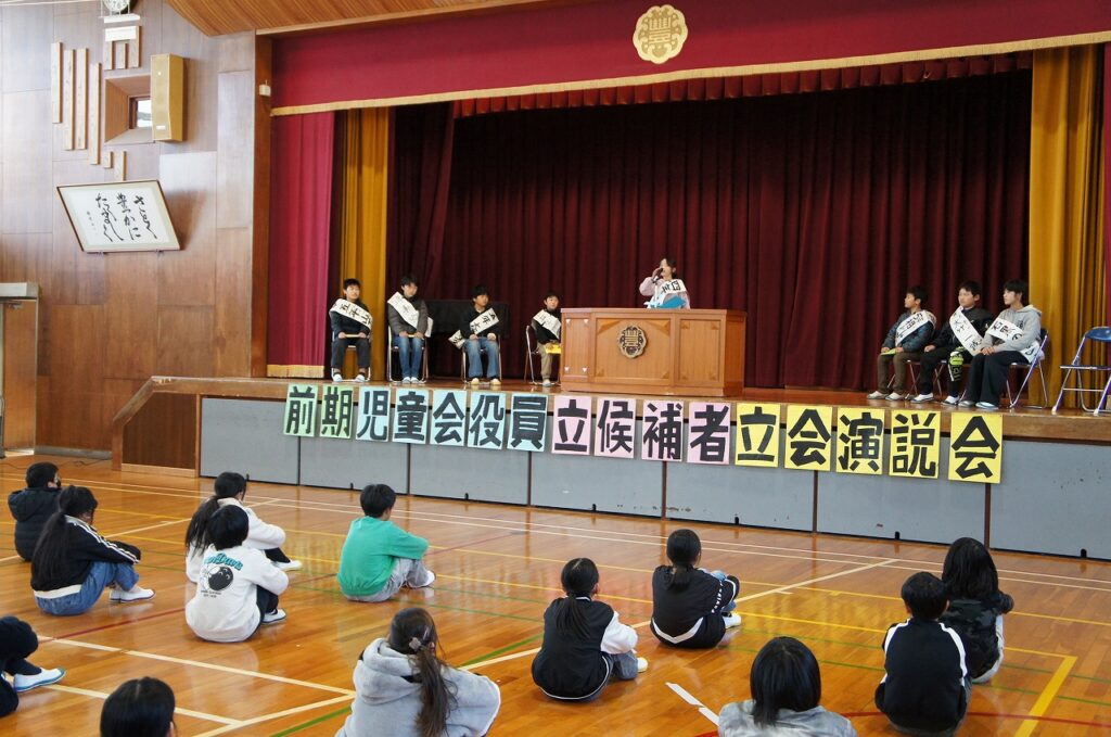 2月19日(木)の6時間目に4~6年生が体育館に集まり、令和8年度前期児童会役員選挙の立ち会い演説会と投票が行われました。3年生は来年度に向けて、見学をしました。立ち会い演説会では、選挙管理委員が司会・運営を担当しました。
