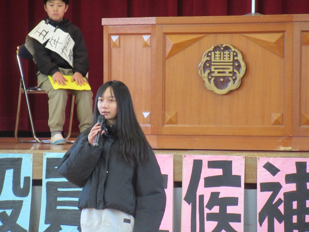 立会演説会では、どの立候補者も、豊浜小学校をよくしたいという熱い思いを真剣に、そして堂々と伝えていました。豊浜小学校が一段とすばらしく、笑顔であふれる楽しい学校になっていくという期待がもてました。