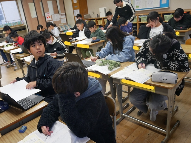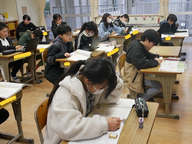 5年生は、国語の時間によりよい未来のために「子ども未来科」でどんなことを学ぶと良いか提案するスピーチの準備をしていました。自分が決めたテーマについて情報を集め、構成メモや原稿の作成をしていました。準備の様子を見ると、とても聞き応えのあるスピーチになりそうです。