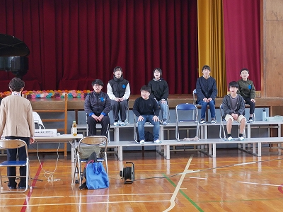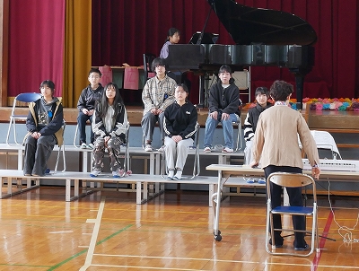 卒業式に向けて、音楽の先生をお迎えして歌の練習を行いました。