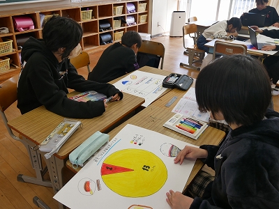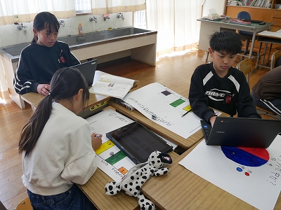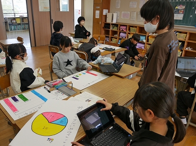 4年生は、国語の時間に「調べてわかったことを話そう」の準備をしていました。グループで調べたいことを決めて、アンケートを取って、その結果をわかりやすく伝えるために提示資料や発表原稿の作成をしていました。グループで仕事を分担して、協力しながら作業を進めていました。