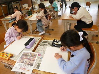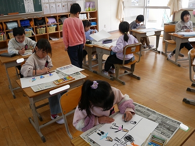 1年 生活 投稿日時: 2026年3月9日 投稿者: 豊浜小学校 令和8年3月9日(月) 4時間目 1年生は、この一年間の思い出を絵に描いていました。この絵は、来年入学する新1年生の教室や廊下を飾る絵になります。新1年生に小学校1年生の楽しさが伝わるといいですね。