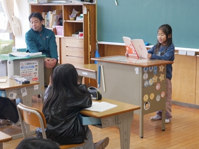 2年生は、国語の時間に2年生の思い出の発表していました。楽しかった思い出をわかりやすく発表していました。発表の後には、聞いていた人からの質問にも答えていました。