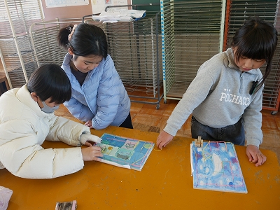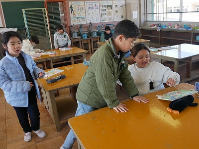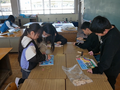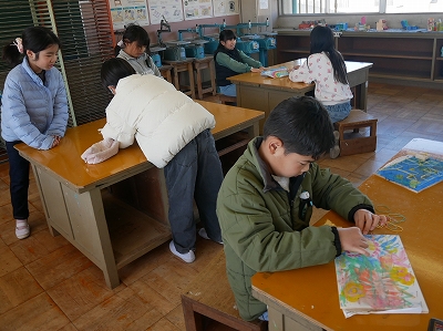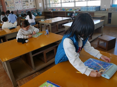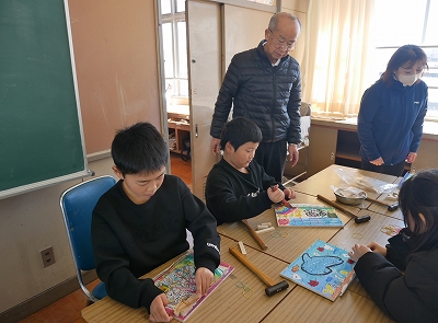 3年生は、図工の時間に「くぎうちトントン」で作ったコリントゲームで遊んだり、修正を加えたりしていました。とっても楽しそうに活動していました。