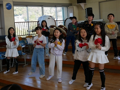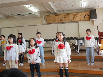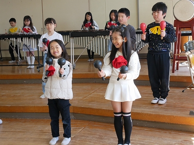 3時間目、2年生が先生たちを招待して、音楽会を開きました。踊りをつけて歌ったり、楽器を演奏したりと5曲を披露してくれました。最初は少し緊張気味でしたが、一生懸命演奏したり元気よく歌ったりして、とっても楽しい時間になりました。