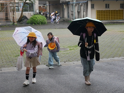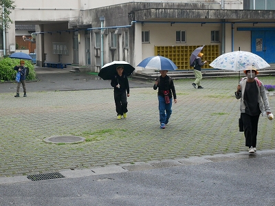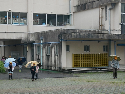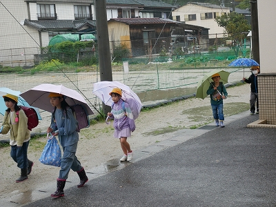 雨の中の登校