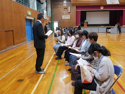 令和7年度の役員の皆様ありがとうございました。令和8年度の役員・委員の皆様、よろしくお願いいたします。そして、PTA総会の後は、体育館で各学年に分かれて学年懇談会を行いました。担任より学年の目標や行事や学習の予定などについて説明しました。