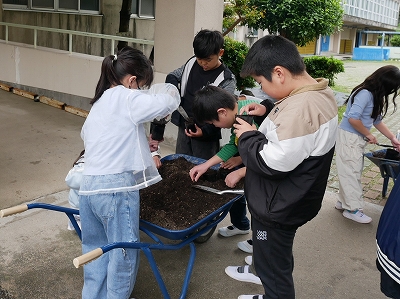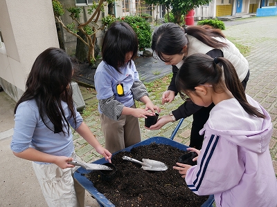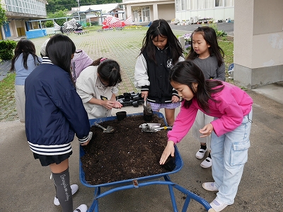 3年生は、理科の時間にホウセンカの種まきをしていました。ポットに土を入れ、種をまきました。どのように育っていくか楽しみですね。
