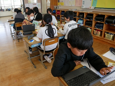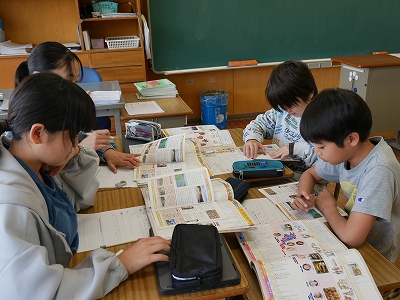 6年生は、総合的な学習の時間に修学旅行先の奈良・京都の文化財について調べていました。グループで協力して、調べを進めていました。事前学習をしっかりしておくと、より充実した修学旅行になりますね。