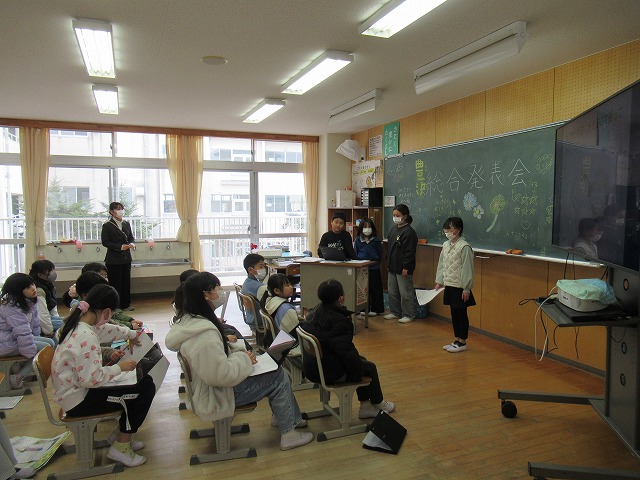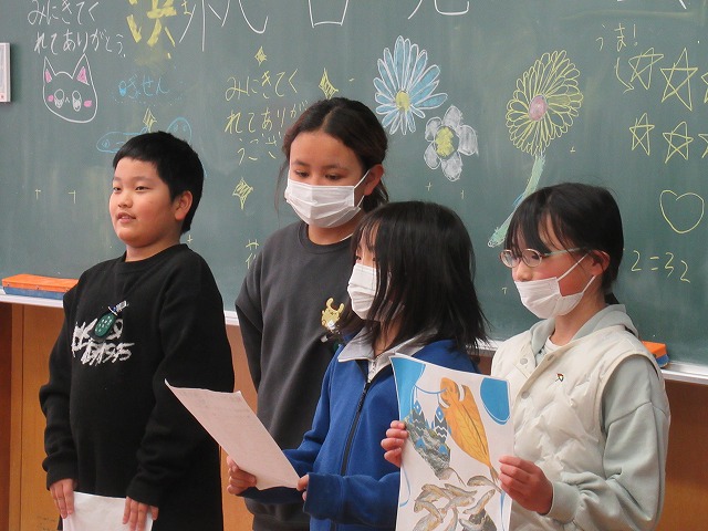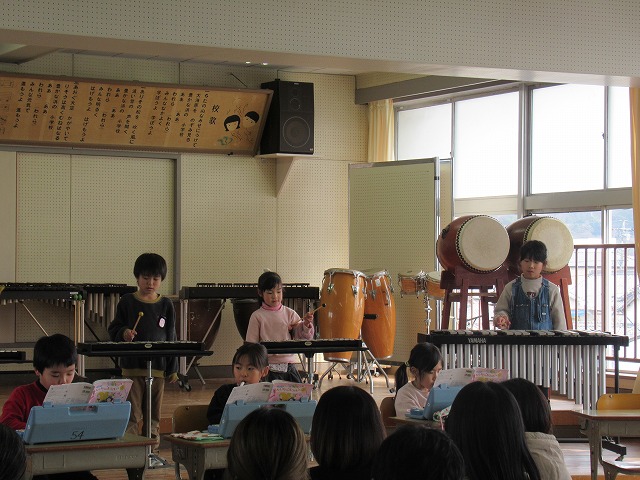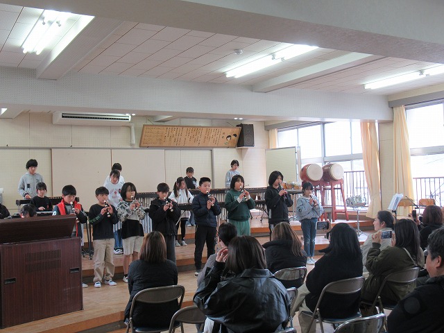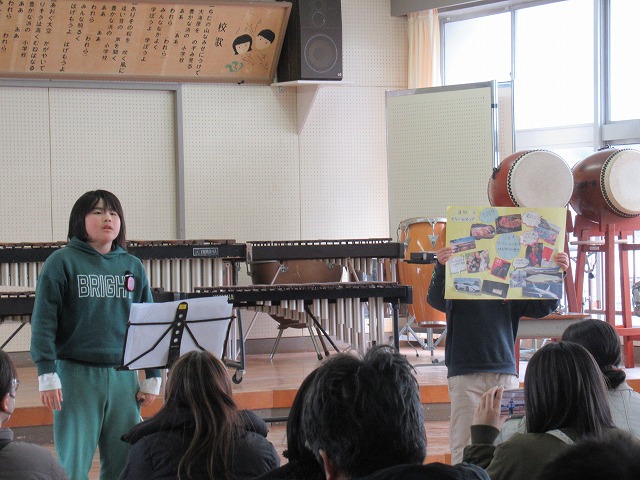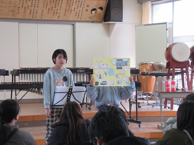 本日は、今年度最後の学校公開日でした。1年生は、音楽で学習した曲を元気よく歌ったり、合奏したりしました。2年生は、生まれてきてから今までどのように成長してきたのか、生活科で調べたことを一人ずつ発表しました。3年生は、総合で学習したことを班ごとに発表しました。成長した姿を多くのおうちの方に参観していただき、とてもよい公開日となりました。