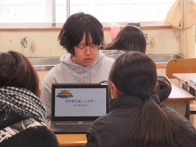6時間目は、4~6年生が授業を公開しました。4年生は「私の将来の夢」というテーマで、なりたい職業やこんな生活をしたいなど、自分の思い描いた夢について発表しました。5年生は家庭科の授業でした。自分の道具箱を時間をかけて整理整頓しました。おうちの方が近くで見てくれていたので、どの子もがんばっていました。6年生は、修学旅行へ行ってよかった場所を発表し、おうちの方と一緒にすごろくを楽しみました。多くの保護者の方に来ていただき、どの学年もすてきな学校公開日となりました。