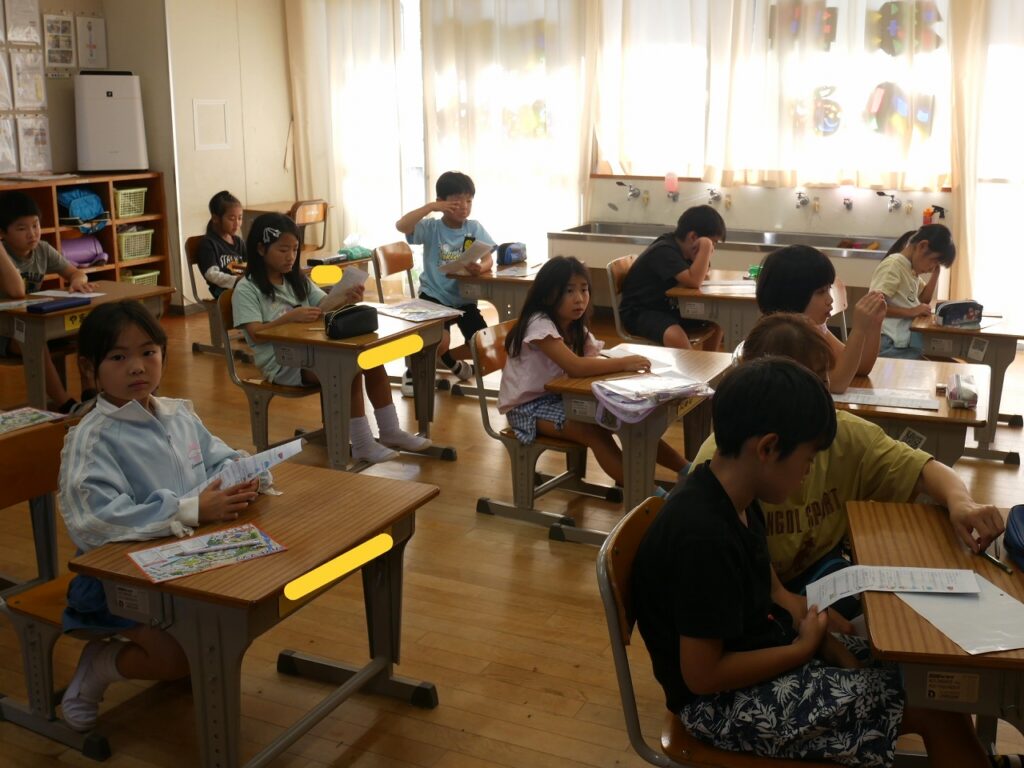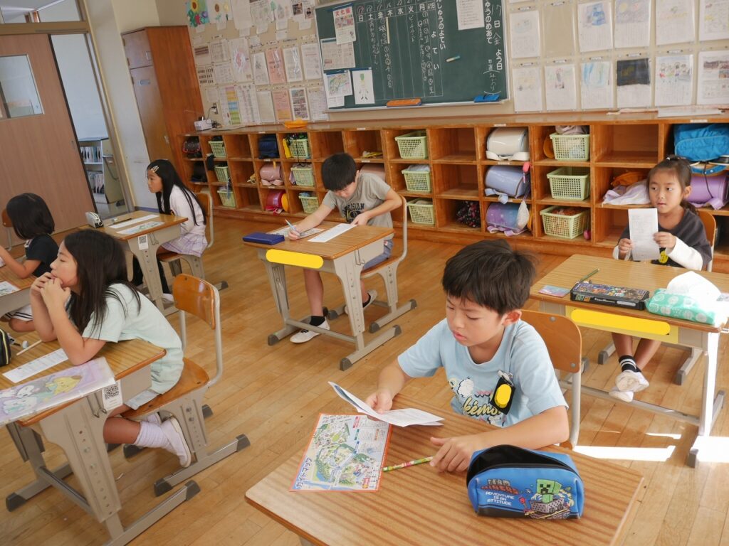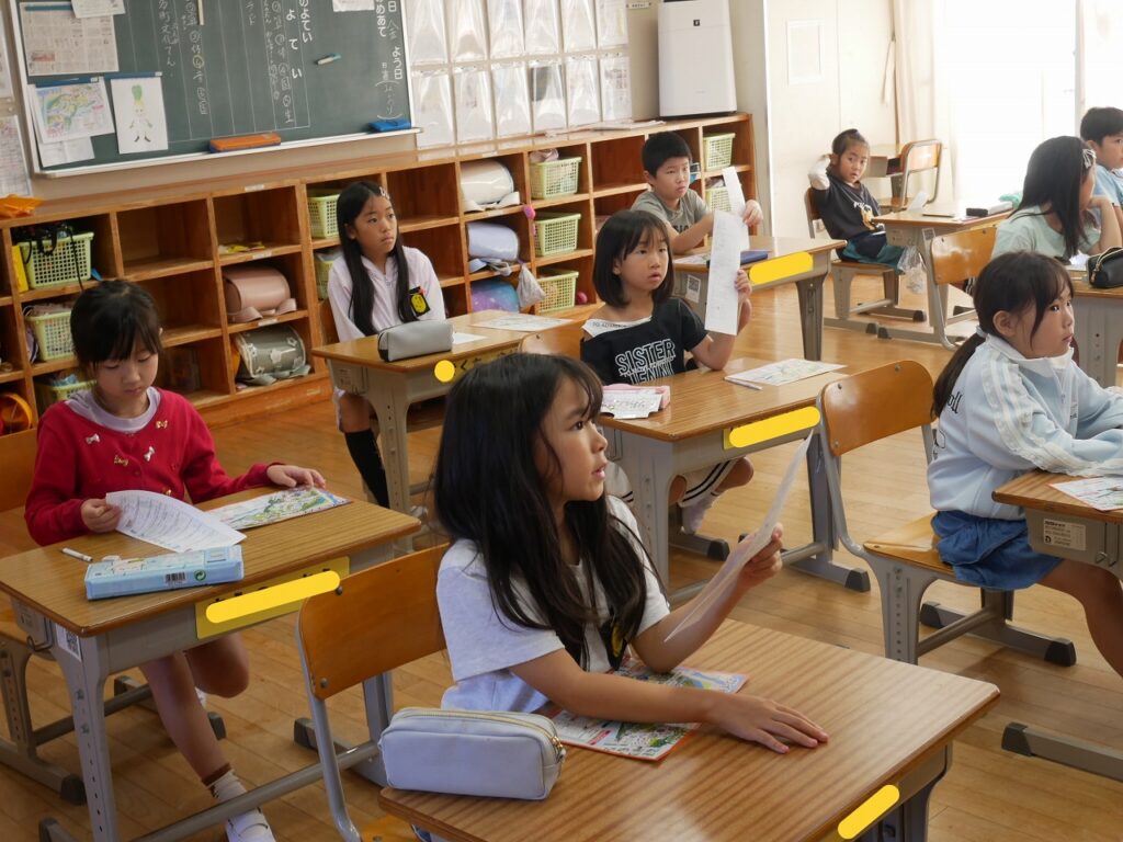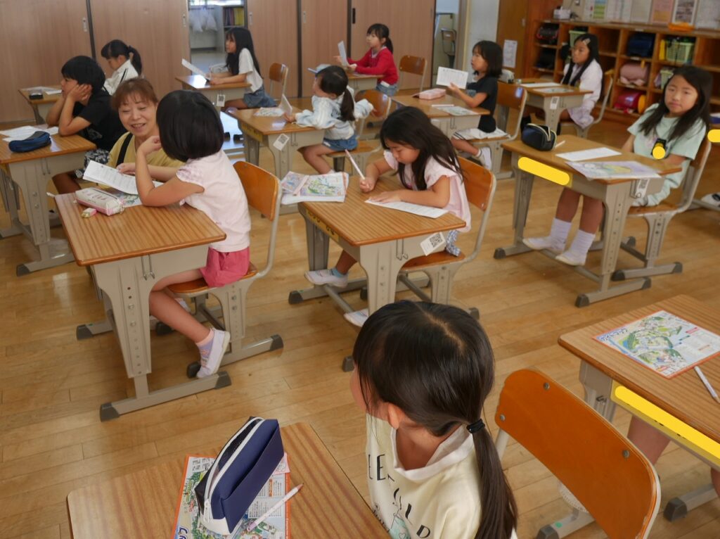 2年生は、生活の時間に来週の校外学習(ビーチランド)の話をしていました。園内マップやしおりを使ってグループの係や日程などを確認していました。とても楽しみにしている様子が伝わってきました。