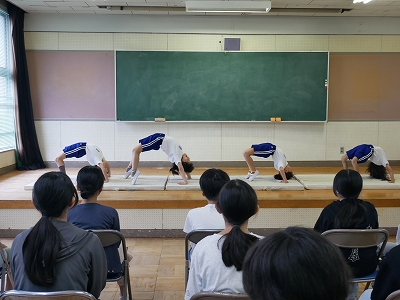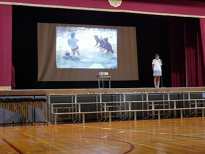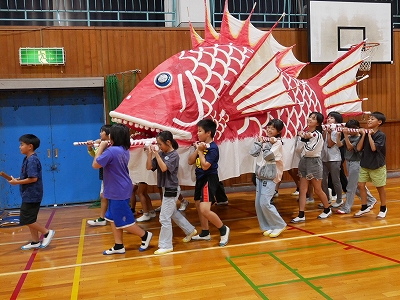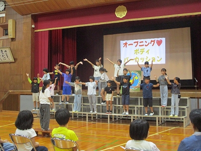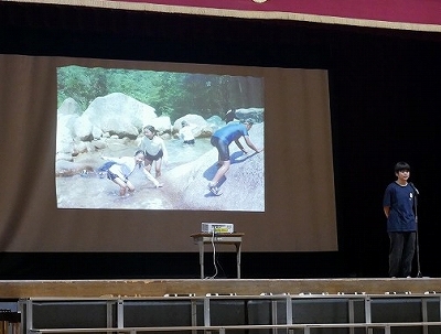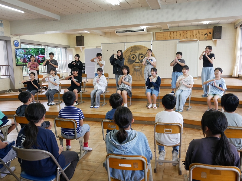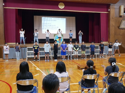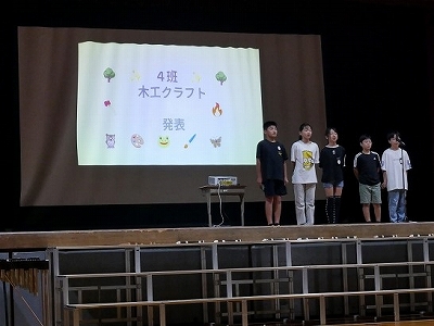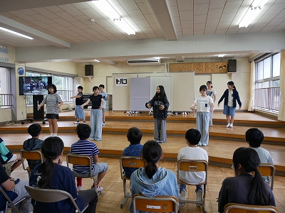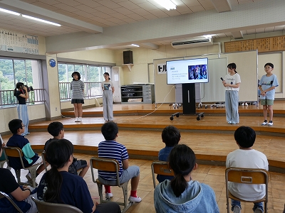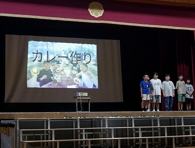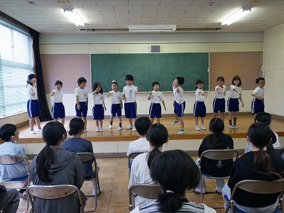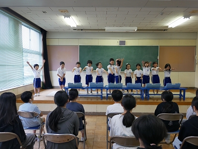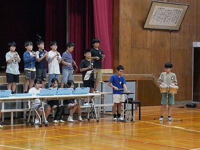 5年生は、野外教育活動で学んだことや光の舞の発表とルパン三世のテーマの合奏を披露しました。充実した野外教育活動だった様子をしっかりと発表しました。たくさん練習したことが伝わるテキパキした動きでした。
