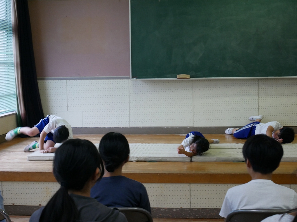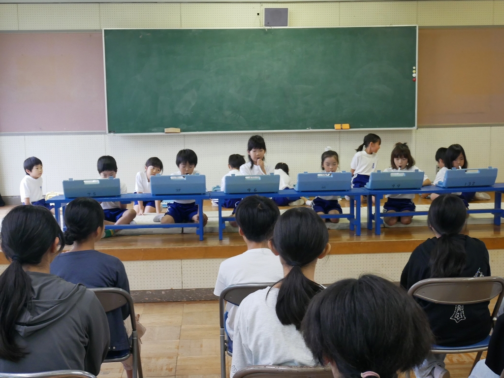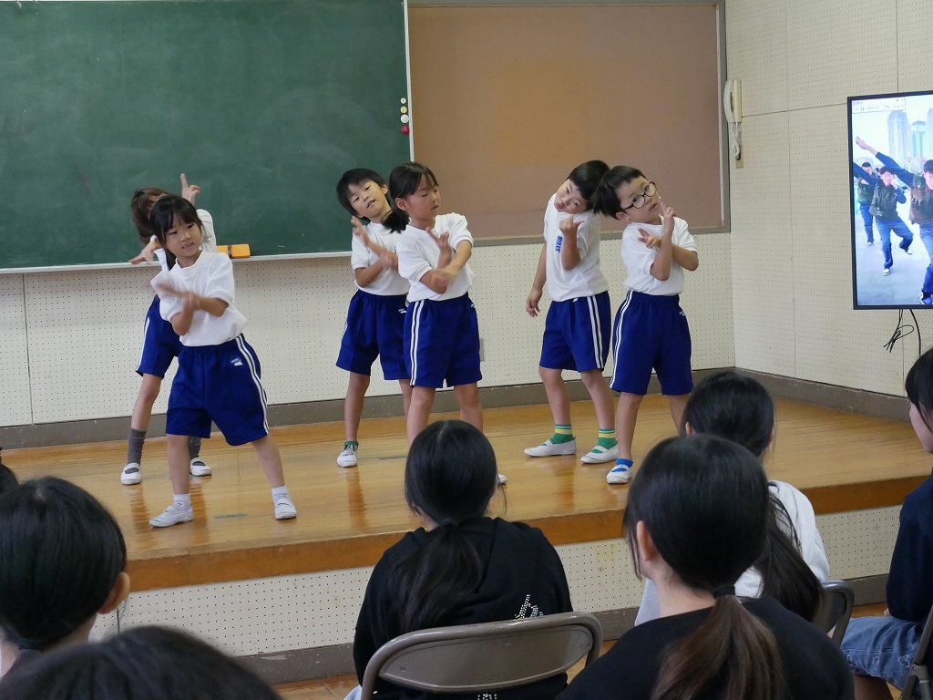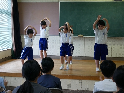 1年生は、国語、体育、音楽で学習したことを組み合わせて発表しました。歌、鍵盤ハーモニカ、マット運動、音読、早口言葉、ダンスと盛りだくさん。かわいい笑顔で一生懸命発表することができました。