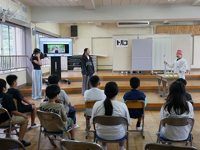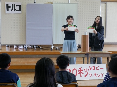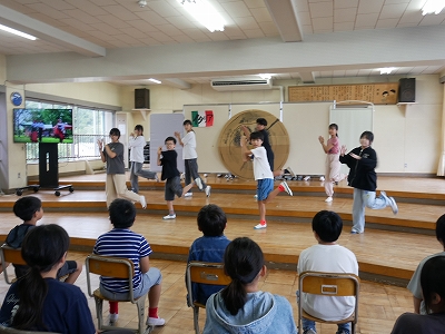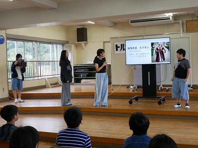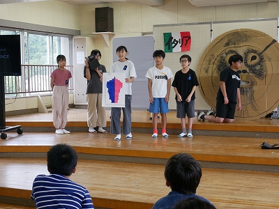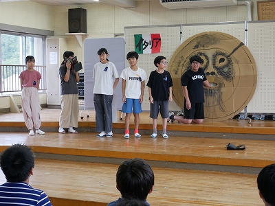 6年生は、校外学習で出かけたリトルワールドで調べたことを中心にトルコ、イタリアについて発表しました。協力して作成した小道具を生かしてわかりやすい発表でした。途中のCMも楽しめました。