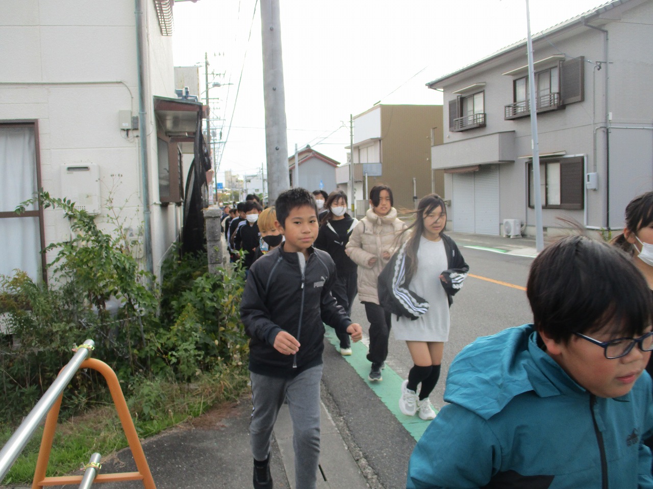 今日の5時間目に,地震・津波避難訓練がありました。授業時間に震度6強から震度7の地震が起こって内海橋が崩壊の恐れがあるため,林之峯(南知多中学校の裏山)まで走って避難する訓練を行いました。津波の第1波と第2波が到達する予定の時間までに,全員ががんばって走ることができました。今日は,きずなの会の方々,おまわりさん,PTA委員のみなさんに立哨していただき,安全に避難することができました。また,今回は,内海地区在住の中学生ボランティアのみなさんが,保育園児の避難の手伝いをしてくれました。本当に,ありがとうございました。家にいる時に地震が起こったらどうしたらよいかについては,この機会にぜひご家族で話し合っておいてください。