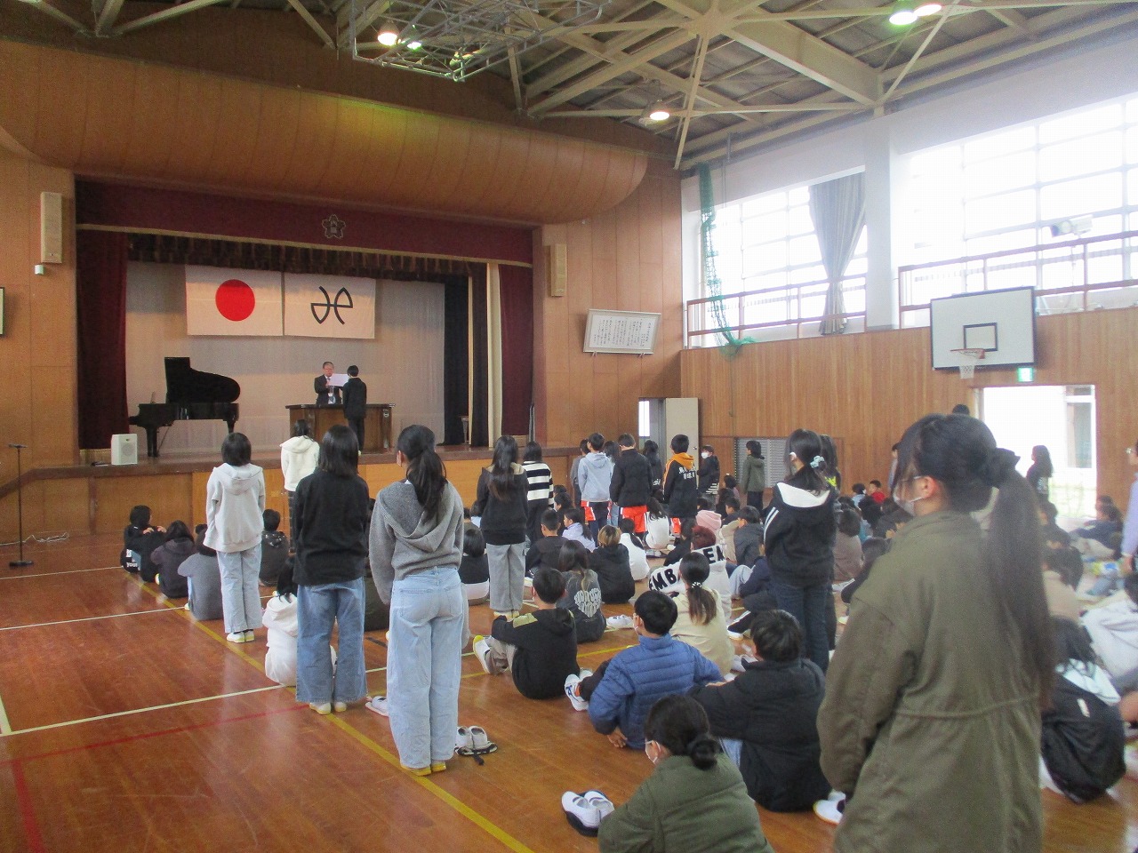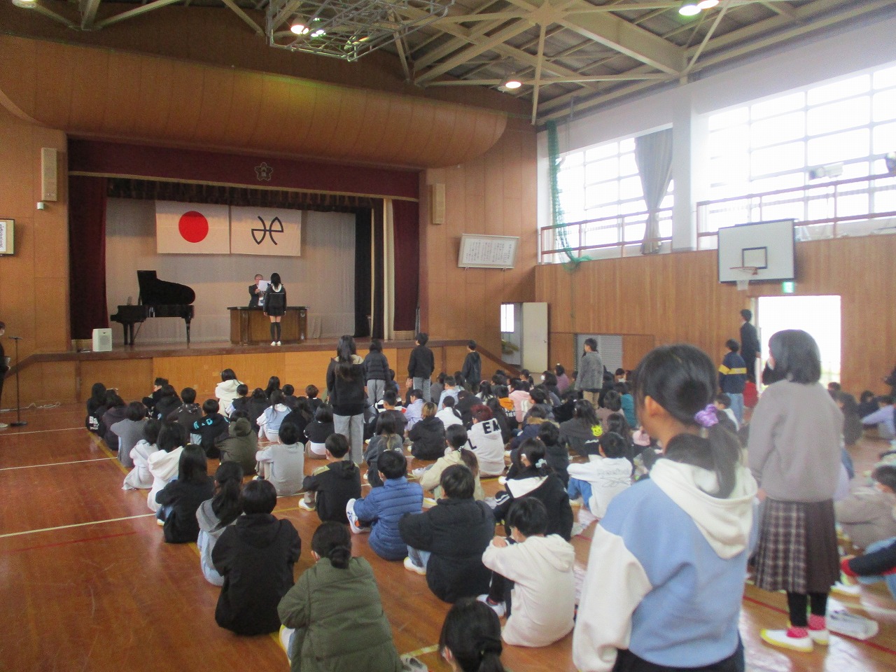 今日は,終業式がありました。校長先生からは,2学期の行事である運動会や学芸会があり,見に来ていただいた方々に恩返しする機会になったことや「一生懸命に頑張っている人は周りに感謝している人が多いように思う」という話がありました。また,代表児童発表では,2年と4年と6年の児童が発表しました。さらに,多読賞の表彰もありました。2学期に頑張ったことなどをみんなの前で堂々と話すことができました。明日から14日間の冬休みが始まります。ご家族との時間が増える冬休み。事故や事件に遭わずに,始業式に全員が揃うことを願っています。よいお年を…。
