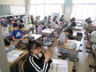 学年がかわるがわる心電図の検査に出かけていました。